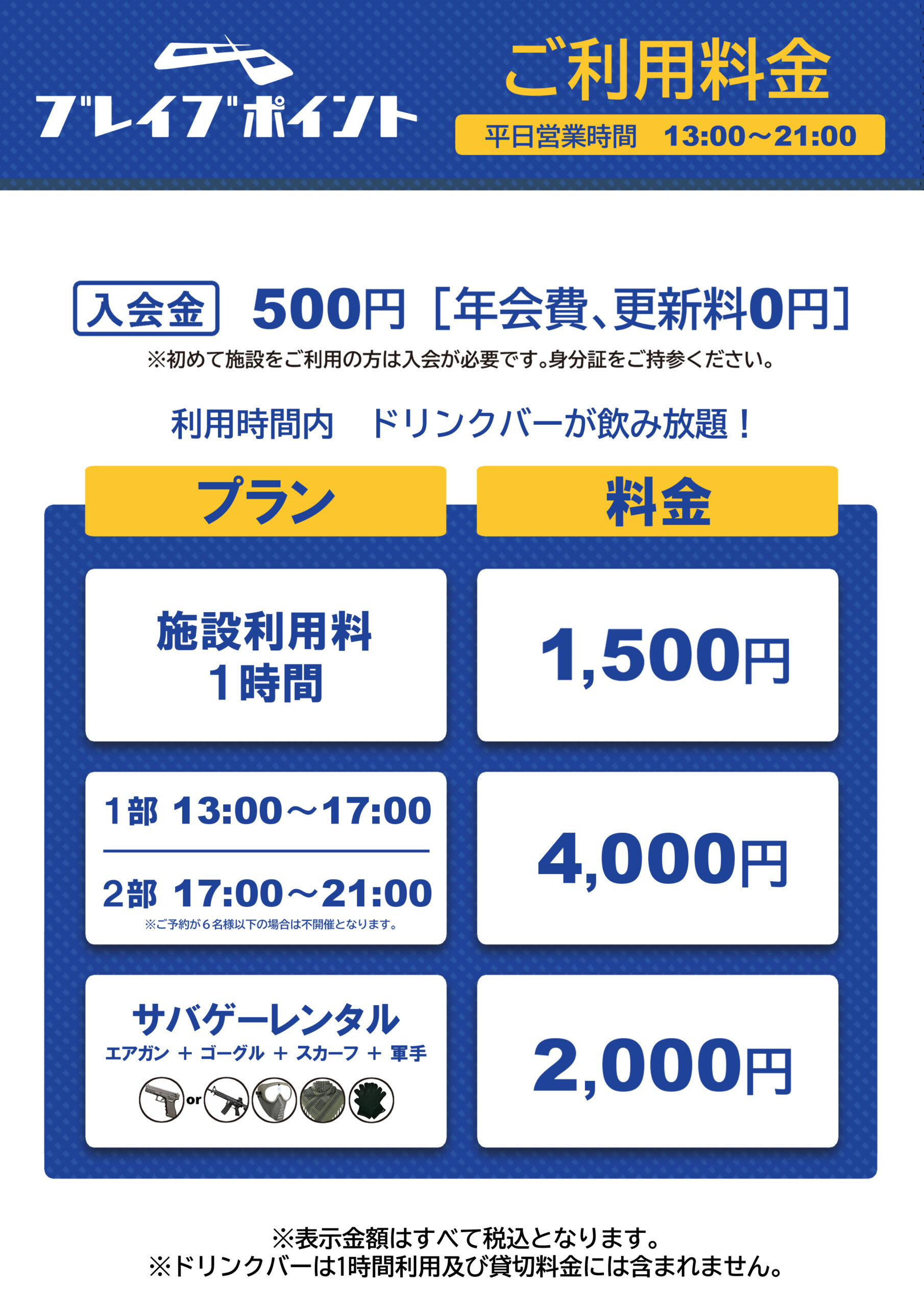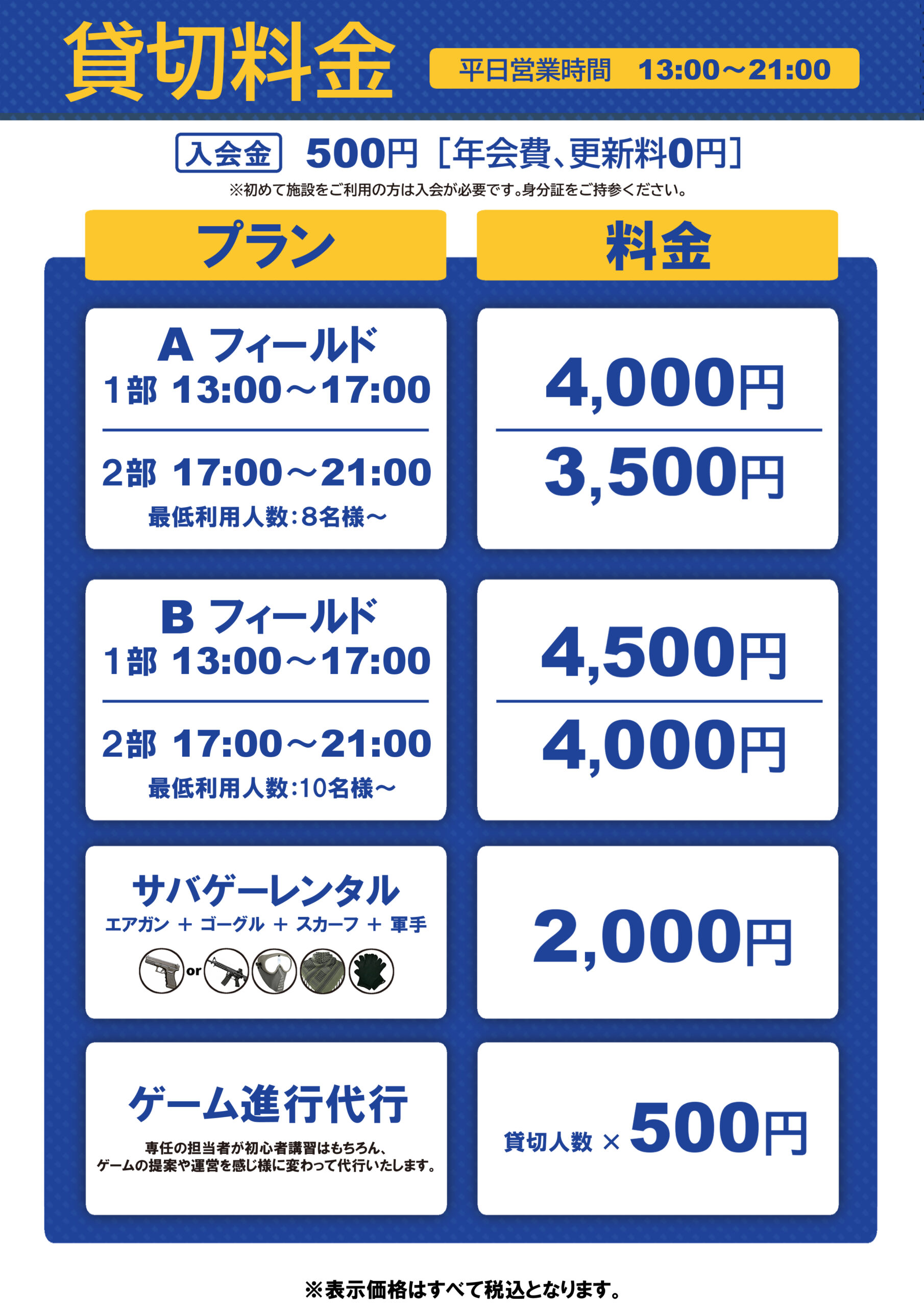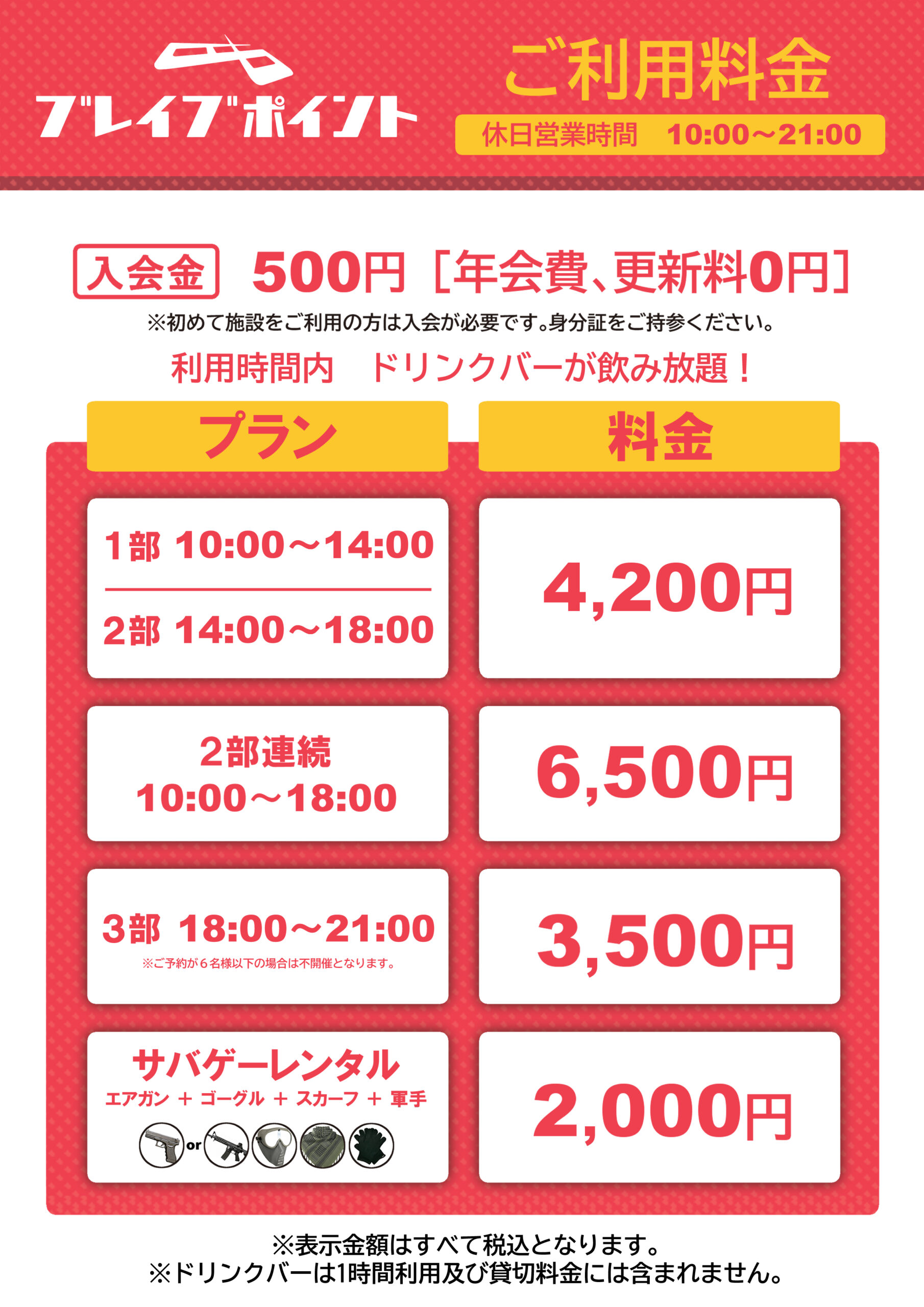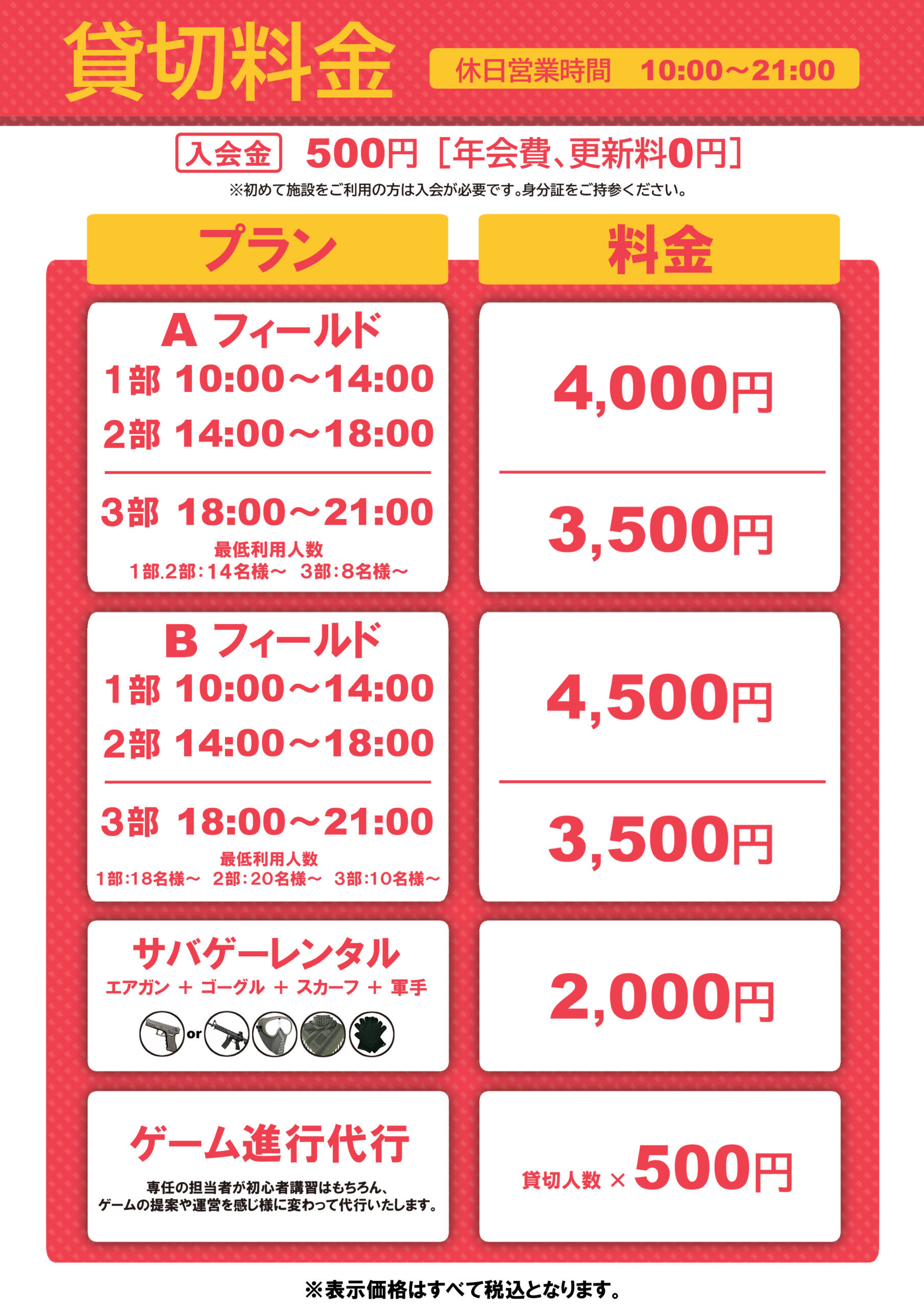 ・名称変更:ベーシックレンタル ⇒ サバゲーレンタルセット 料金:2,500円 ⇒ 2,000円